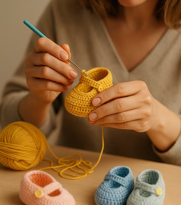 Podrás comenzar hoy mismo, desde la comodidad de tu hogar, a aprender paso a paso cómo hacer hermosos zapatitos de bebé en crochet 🧶.